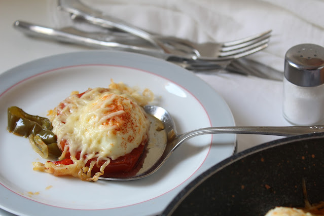 Los huevos turcos me tienen algo despistada, pues los he visto cocinados de dos formas, con una base de yogur y con la receta que hoy traigo. En algún momento haré la primera porque creo que me va a gustar tanto como esta, aunque no se parezcan en nada. Resultó ser un primero contundente, también es verdad que nos comimos dos huevos cada cada uno más las verduras, porque no quiero hablar del pan, como si no existiera, pero la verdad verdadera es que estuvo presente. Es un plato lleno de color, sabor y algo de frescura al ir el tomate crudo, ahí reside parte de su originalidad. Una comida limpia, ya que se cocina todo en la misma sartén, excepto los huevos que son cocidos, además de sabrosa y económica.
